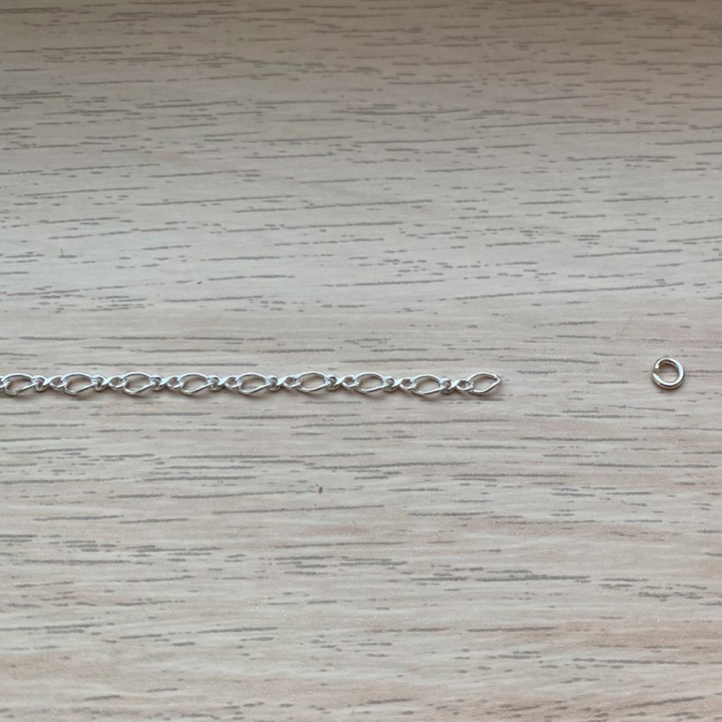 - Cadena de eslabón barbado en ochos por metros en plata de ley 925.
