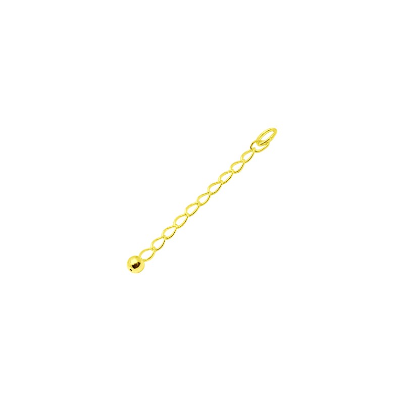 - Alargador para gargantilla y pulsera. Cadena de 4 cm con bolita en un extremo y anilla ovalada abierta en el otro extremo para poder enganchar la cadena alargadora dónde desee.