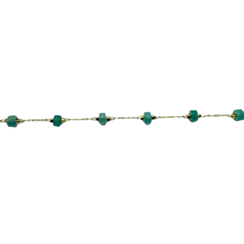 - Cadena de eslabón mini ovalado con cuentas de cuarzo turquesa en forma de donuts por metros en latón bañado en oro.
