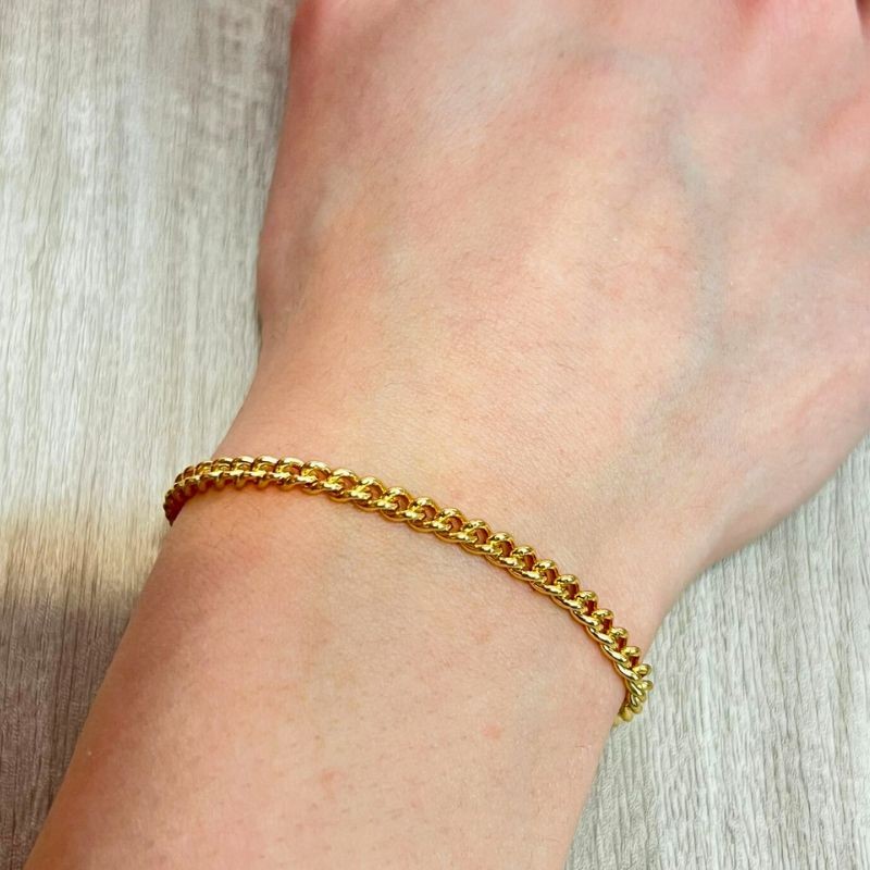 - Cadena barbada mediana de latón bañado en oro de 18k.
