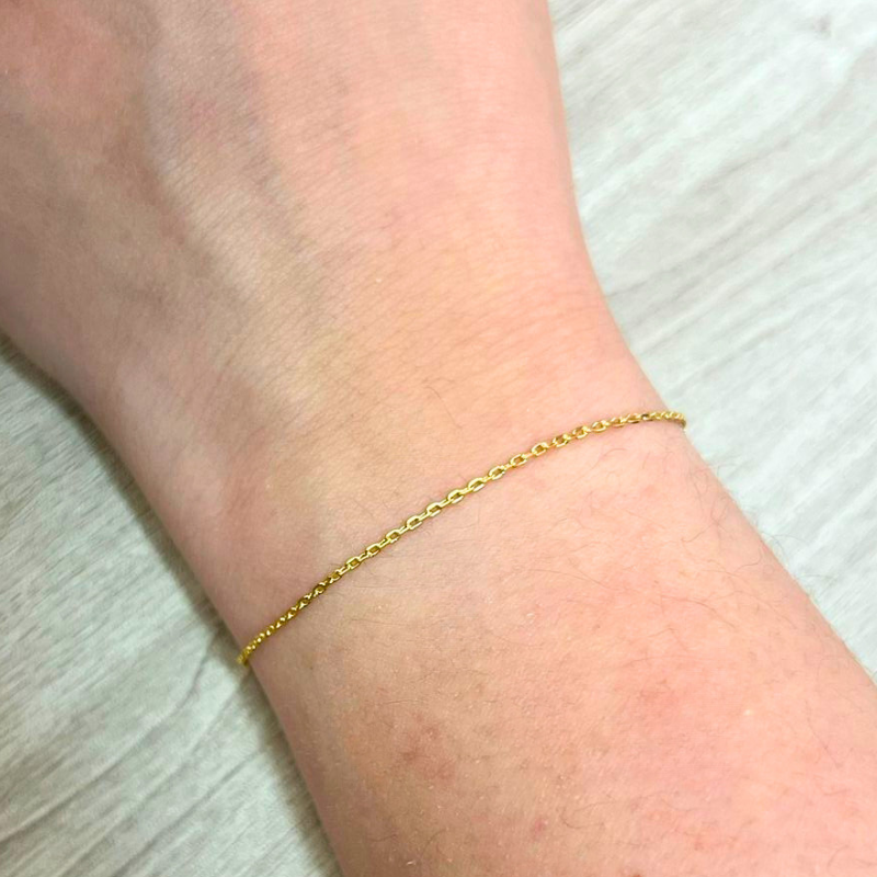 Cadena forzada mini pisada 1,5x1mm. Baño oro