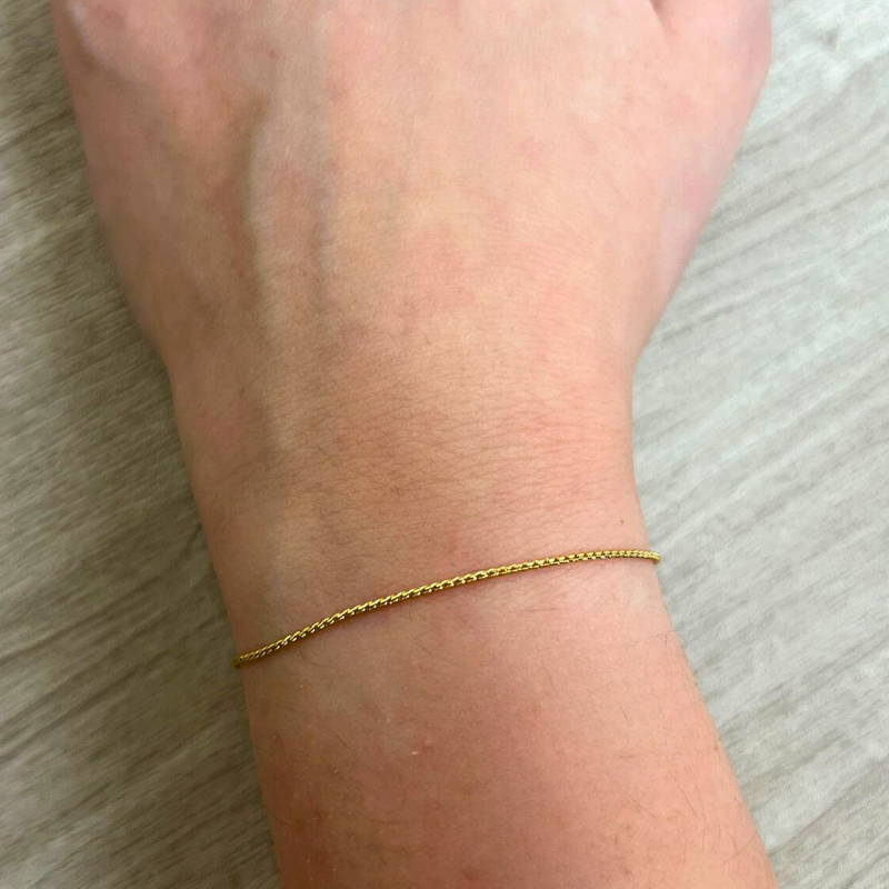 - Cadena serpentina redonda de latón bañado en oro de 18k de 1 mm de grosor.
