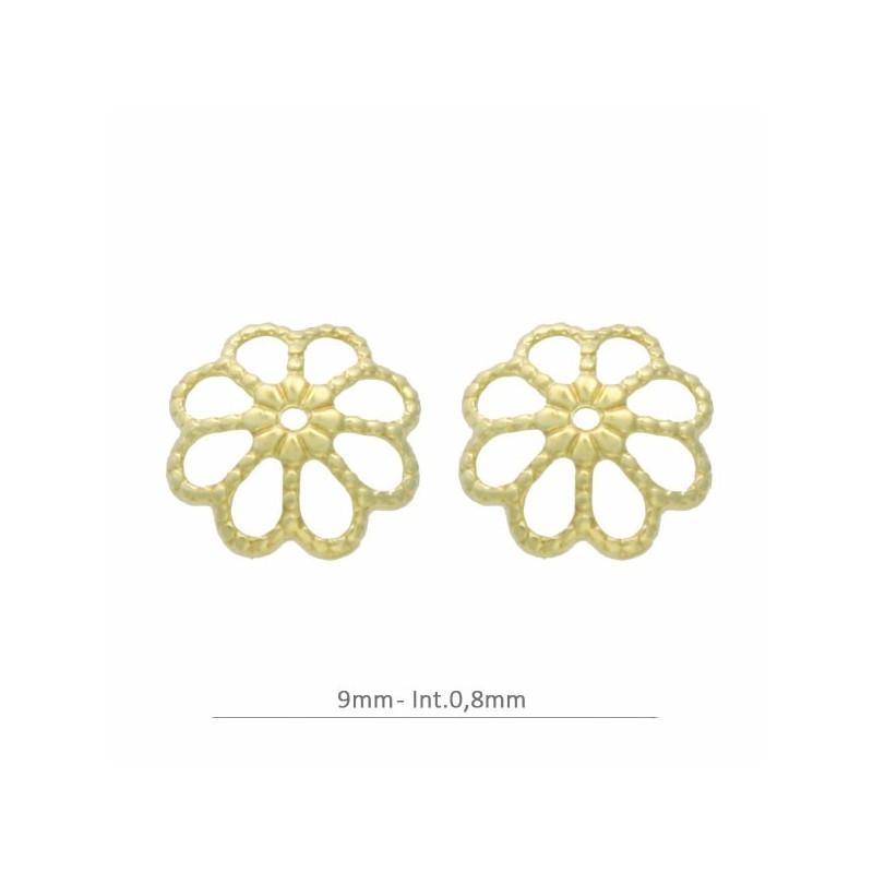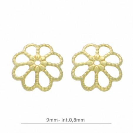 Casquilla fantasia calada flor, tamaño 9 mm. Plata baño oro