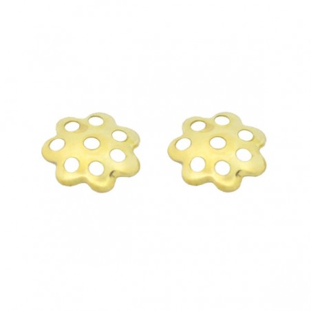 - Casquilla flor de latón en color cobre. - El tamaño es de 8 milímetros y tiene un taladro de 1 milímetro. - El precio es por bolsa y la bolsa contiene 10 unidades.