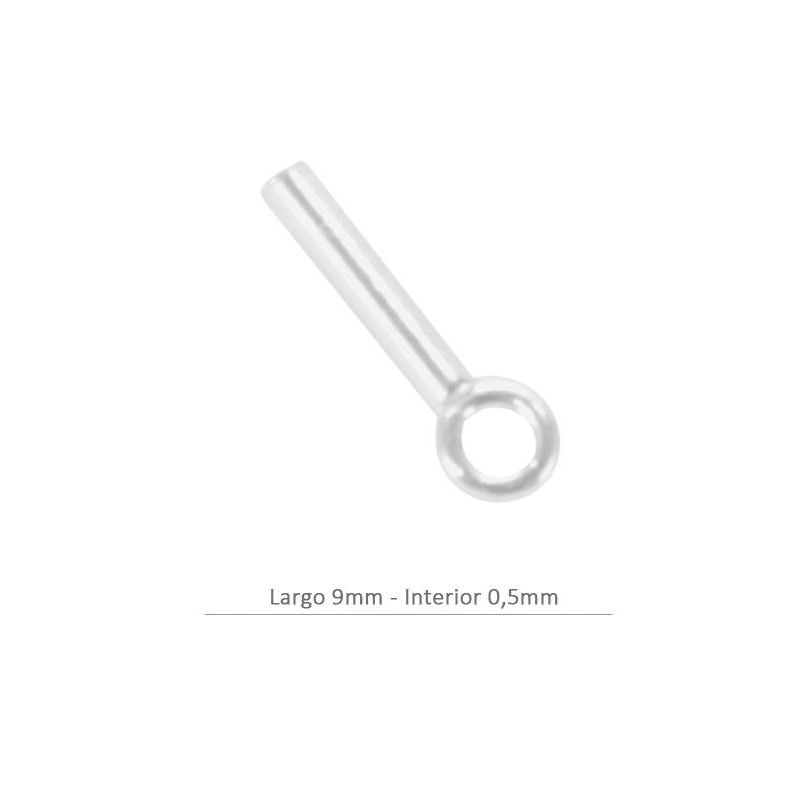 Terminal de tubo cerrado con asa para cordón o cable de 0,3 mm. El tubo es de 9 mm de largo y 0,3 mm de interior en plata de ley 925. Fabricado en España.