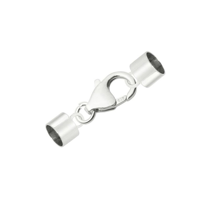 Cierre de tubo cerrado con mosquetón para cordón de 6 mm. El tubo es de 9 mm de largo y 6 mm de interior en plata de ley 925. Fabricado en España.