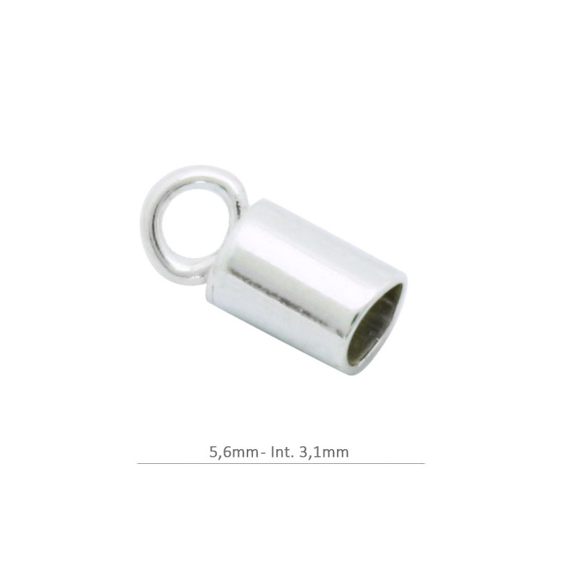 Terminal de tubo cerrado con asa para cordón de 3 mm. El tubo es de 5 mm de largo y 3 mm de interior en plata de ley 925. Fabricado en España.