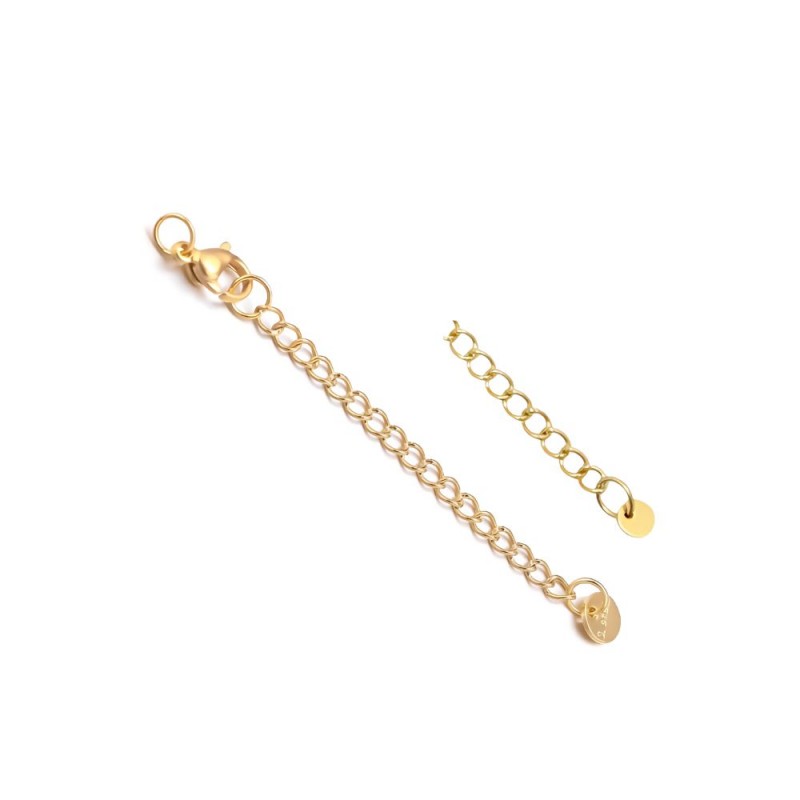 Cadena rombo alargadora de 6,5 cm con mosquetón en acero inoxidable dorado.