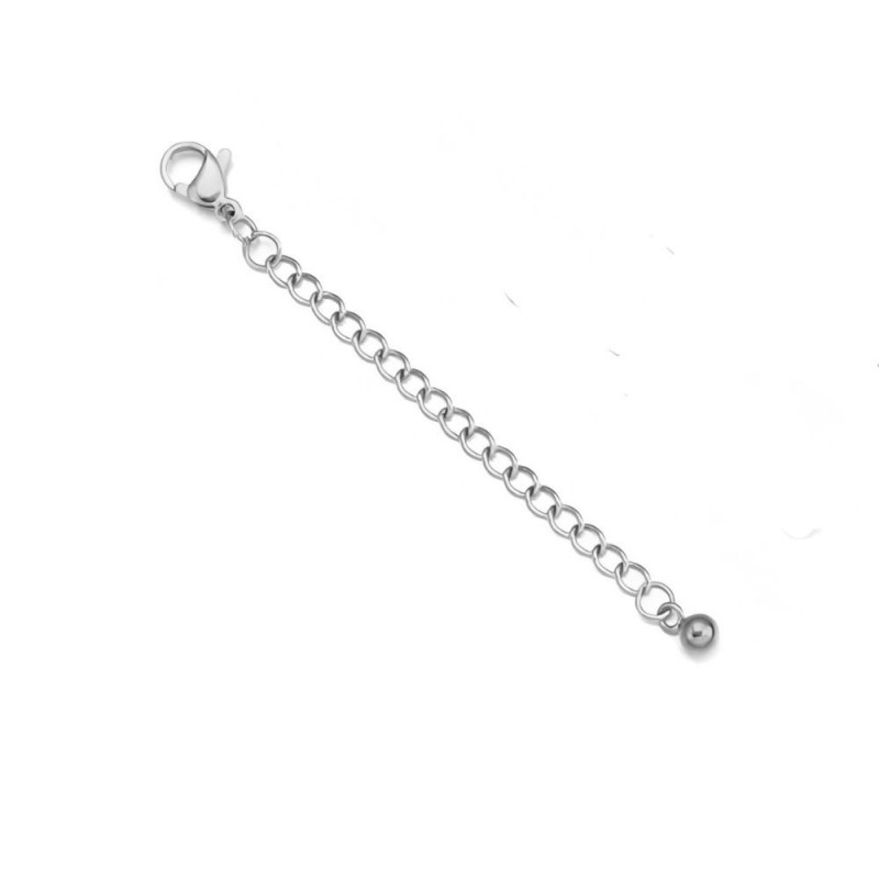 Cadena rombo alargadora de 6,5 cm con mosquetón y bola de 4mm en acero inoxidable.