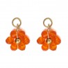 Colgante margarita cinco pétalos de bolitas naranjas con anilla abierta en acero inoxidable dorado.