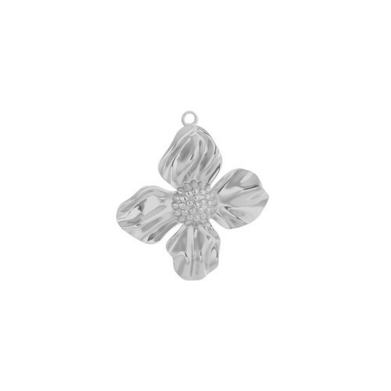 Colgante flor del cornejo de 32 mm en acero inoxidable plateado.