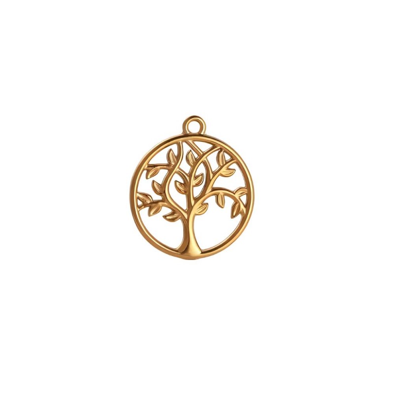 Colgante árbol de la vida de 18mm. Acero inoxidable dorado.