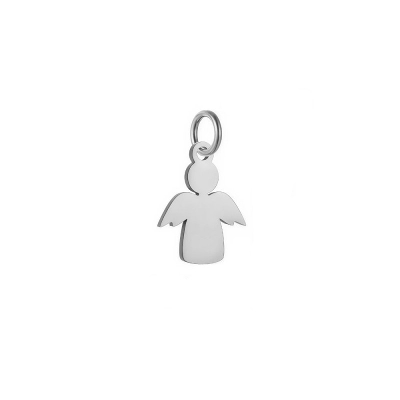 Colgante ángel de 18 mm con anilla en acero inoxidable.