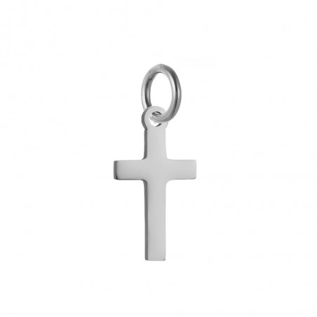 Colgante cruz de 16 mm con anilla en acero inoxidable.