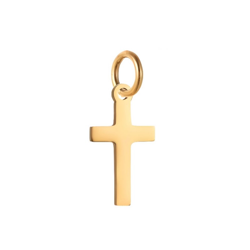 Colgante cruz de 16 mm con anilla en acero inoxidable dorado