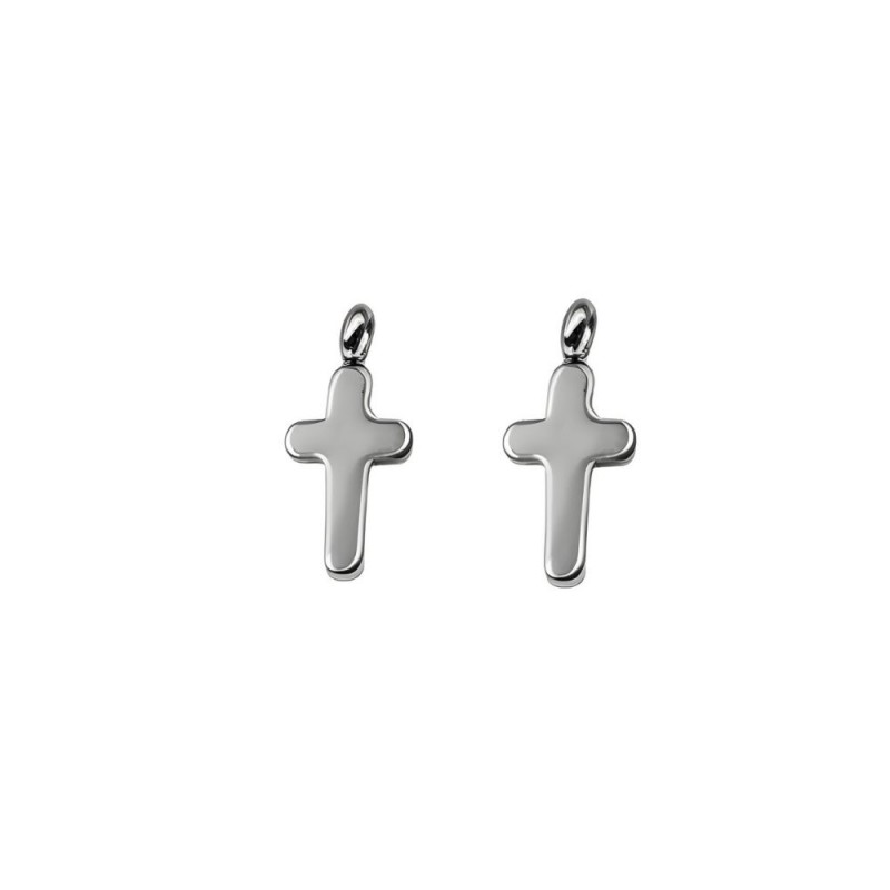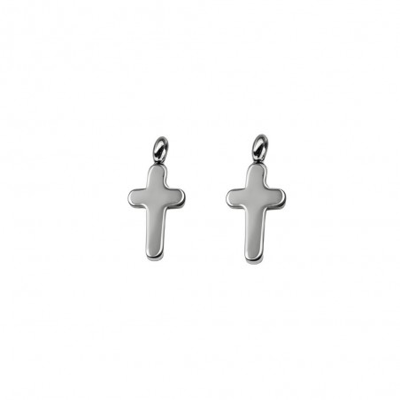 Colgante cruz de 7 mm con asa en acero inoxidable.