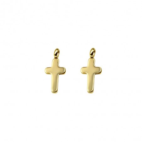 Colgante cruz 16mm. Acero inoxidable dorado.
