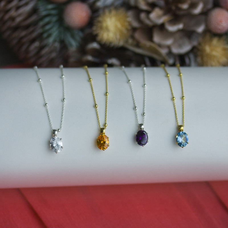 Colgante oval con circonita en color cristal en plata de ley 925. Fabricado en España.