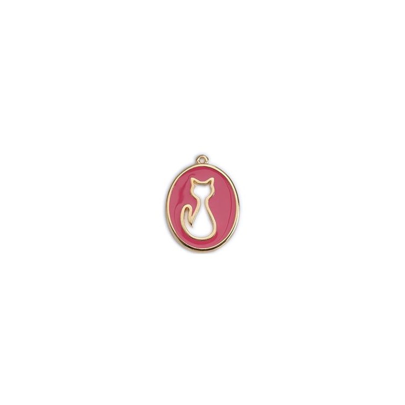 Colgante esmalte gato rosa de 33x25mm. Baño oro