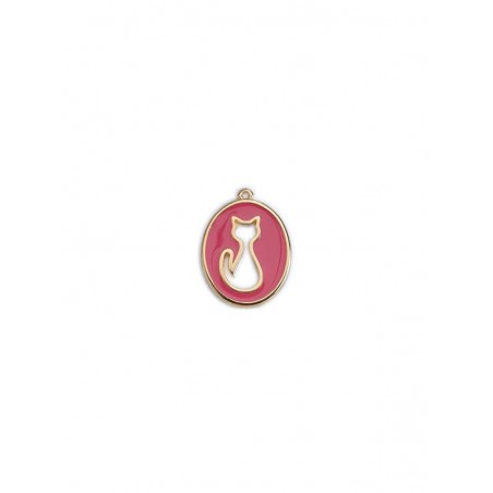 Colgante esmalte gato rosa de 33x25mm. Baño oro.