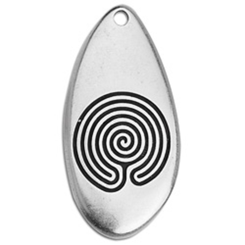 - Colgante oval con laberinto de 28x13 mm. Baño plata. - El precio es por bolsa y la bolsa contiene 1 unidad.