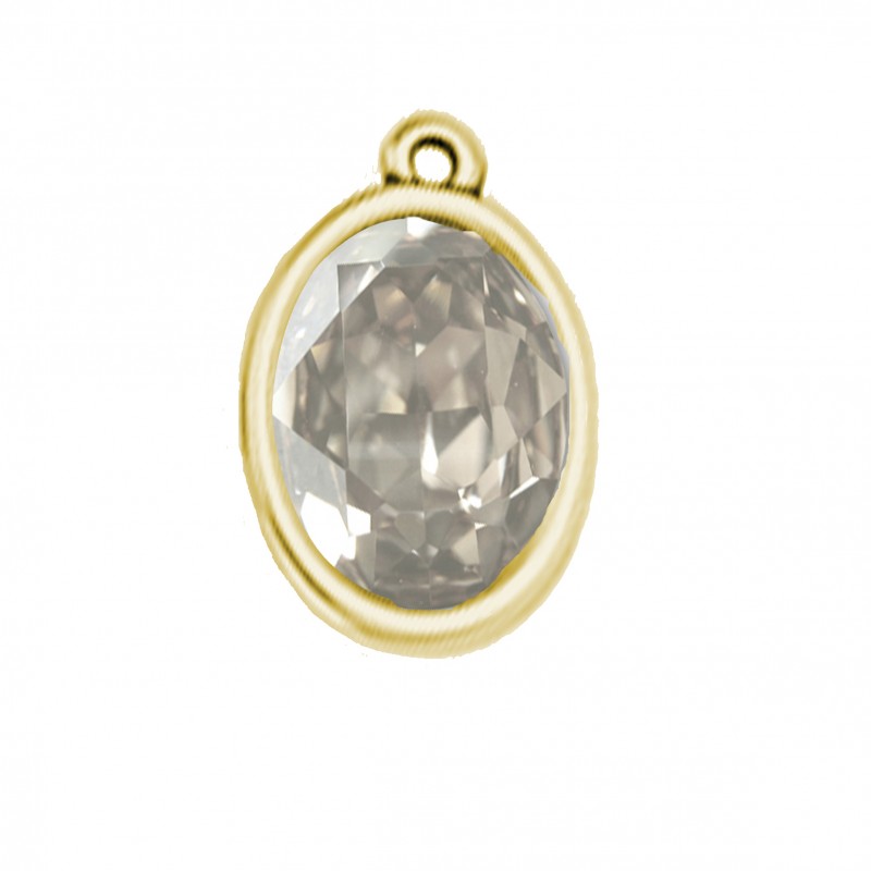 Colgante con asa en zamak con baño de oro con cristal cabuchón Swarovski en color Crystal 14x10 mm. Le recomendamos pegar ambas piezas con nuestro pegamento especial para joyería con referencia 7405, ya que no vienen pegadas.