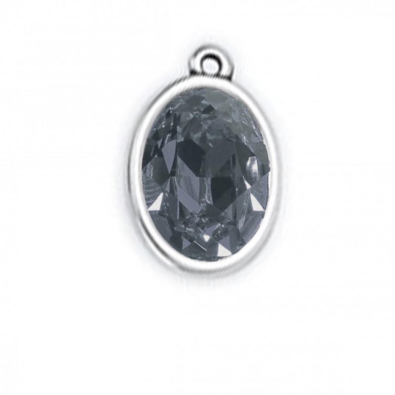 Colgante con asa en zamak con baño de plata con cristal cabuchón Swarovski en color Silver Night 14x10 mm. Le recomendamos pegar ambas piezas con nuestro pegamento especial para joyería con referencia 7405, ya que no vienen pegadas.