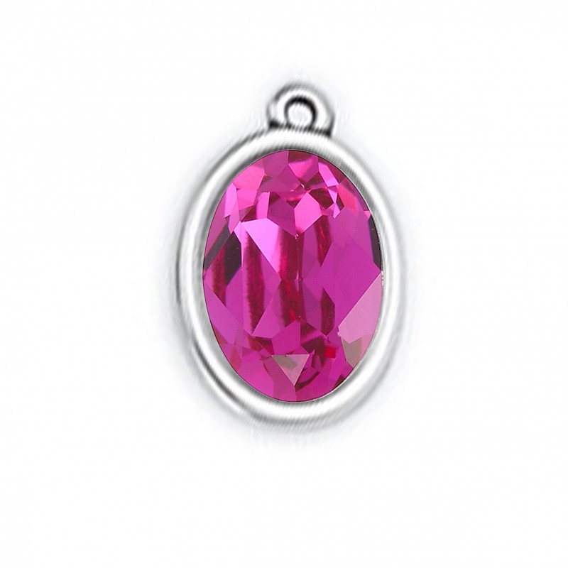 Colgante con asa en zamak con baño de plata con cristal cabuchón Swarovski en color Fucshia 14x10 mm. Le recomendamos pegar ambas piezas con nuestro pegamento especial para joyería con referencia 7405, ya que no vienen pegadas.