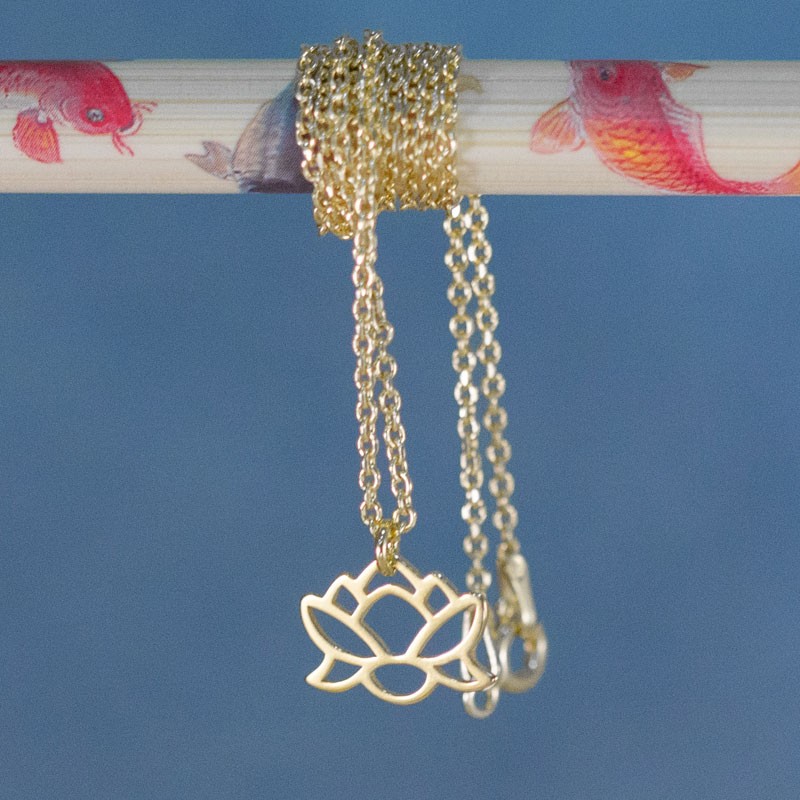 Colgante flor de loto en plata de ley 925, bañado en oro de 18k. Fabricado en España.