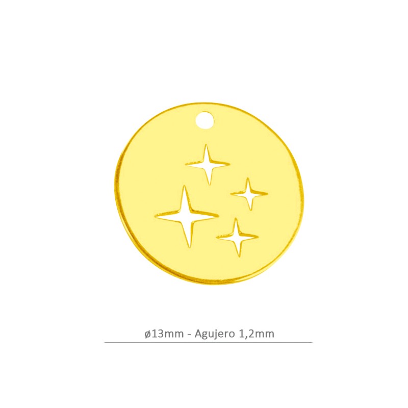 Bolsa de 10 uds. Hilo 0,9 mm. Diámetro interior 2,7 mm. Diámetro exterior 4,5 mm.Colgante estrella polar 8mm, de plata con baño oro