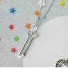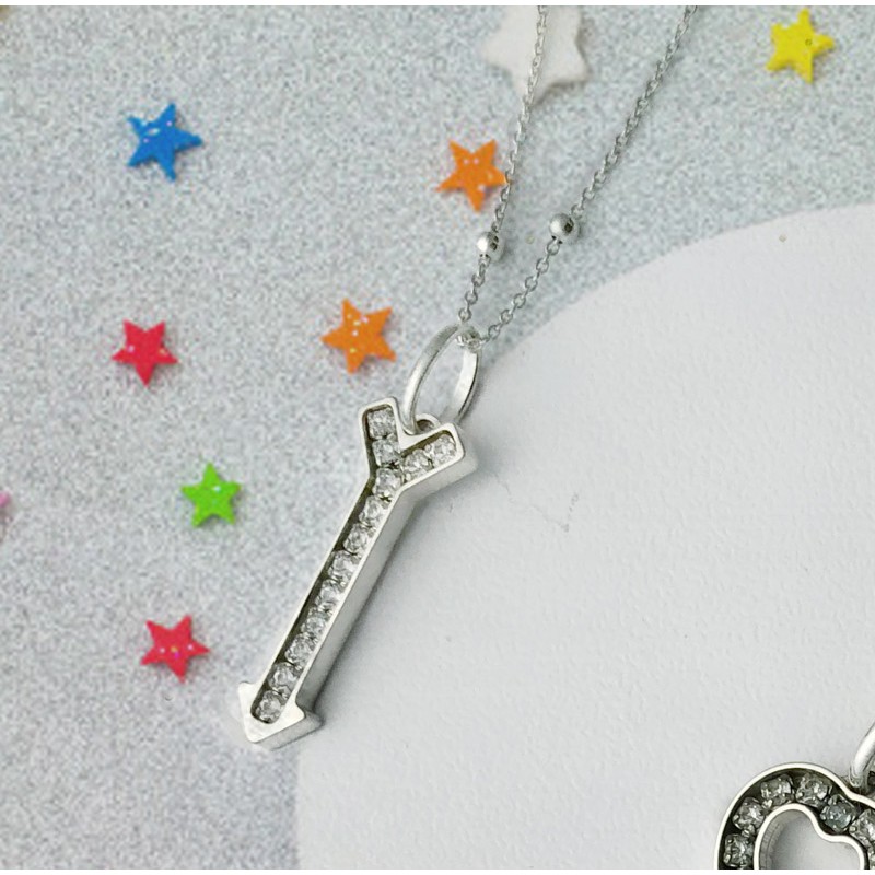 Colgante flecha con anilla en plata de ley 925 fabricado en España y cadena strass Swarovski en color Crystal.
