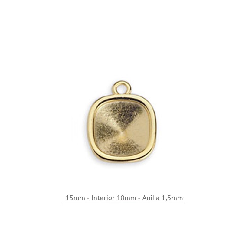 Colgante para cristar swarovski 4470. Zamak con baño de oro. La bolsa contiene 1 unidad. Tiene un tamaño de 15 mm. y tiene un taladro de 1,5 mm. El interior es de 10mm.