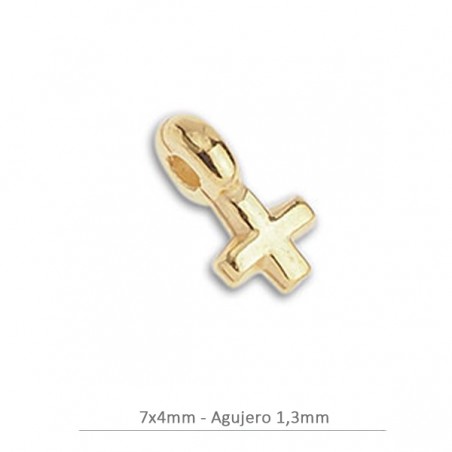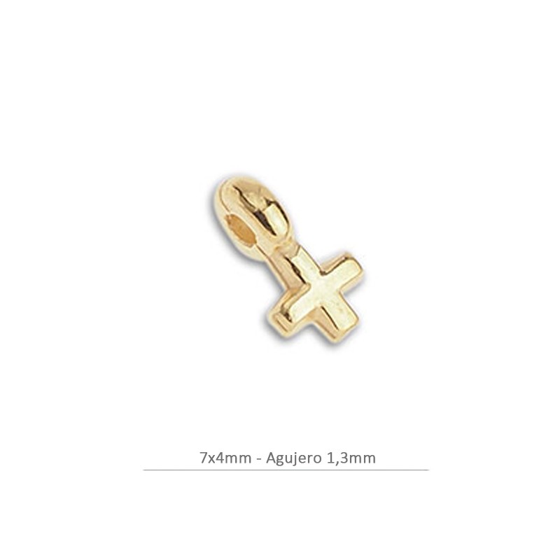 Colgante mini cruz de 7x4mm. Agujero 1,3mm. Baño oro