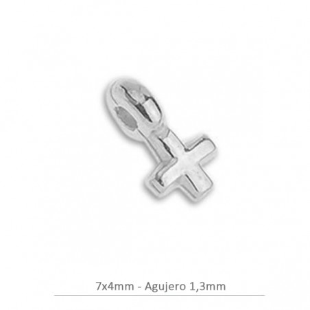 Colgante mini cruz de 7x4mm. Agujero 1,3mm. Baño plata