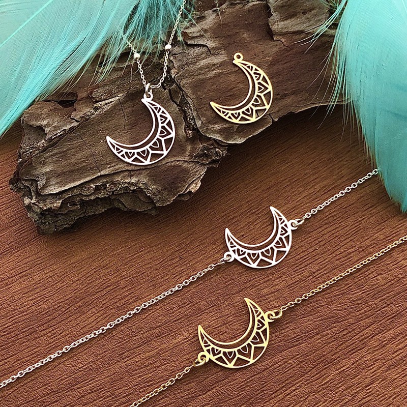 Colgante luna boho con asa en plata de ley 925. Fabricado en España.