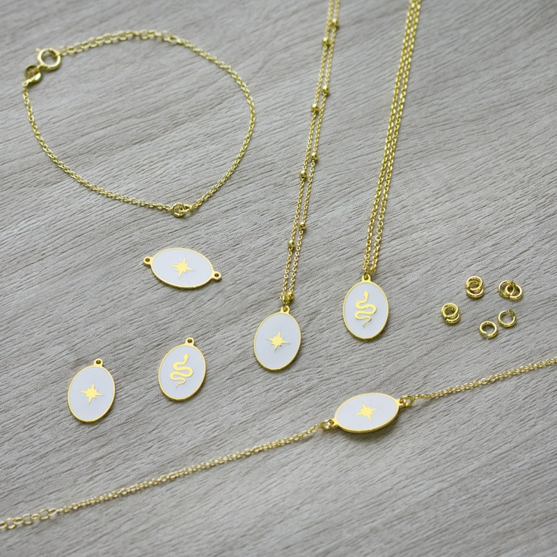 Colgante ovalado blanco con estrella polar baño oro 17mm largo - 10mm ancho y asa 1,2 mm