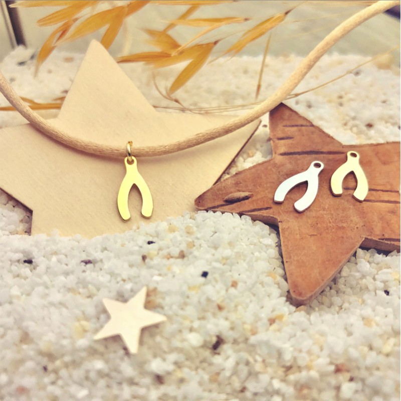 Colgante wish bone (hueso de los deseos) en plata de ley 925, bañado en oro de 18k. Fabricado en España.