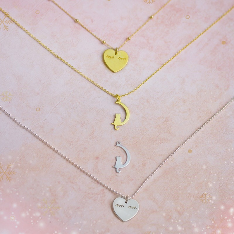 Colgante luna y gato en plata de ley 925, bañado en oro de 18k. Fabricado en España.