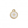 Colgante cruz 10mm. Esmalte blanco. Zamak baño oro