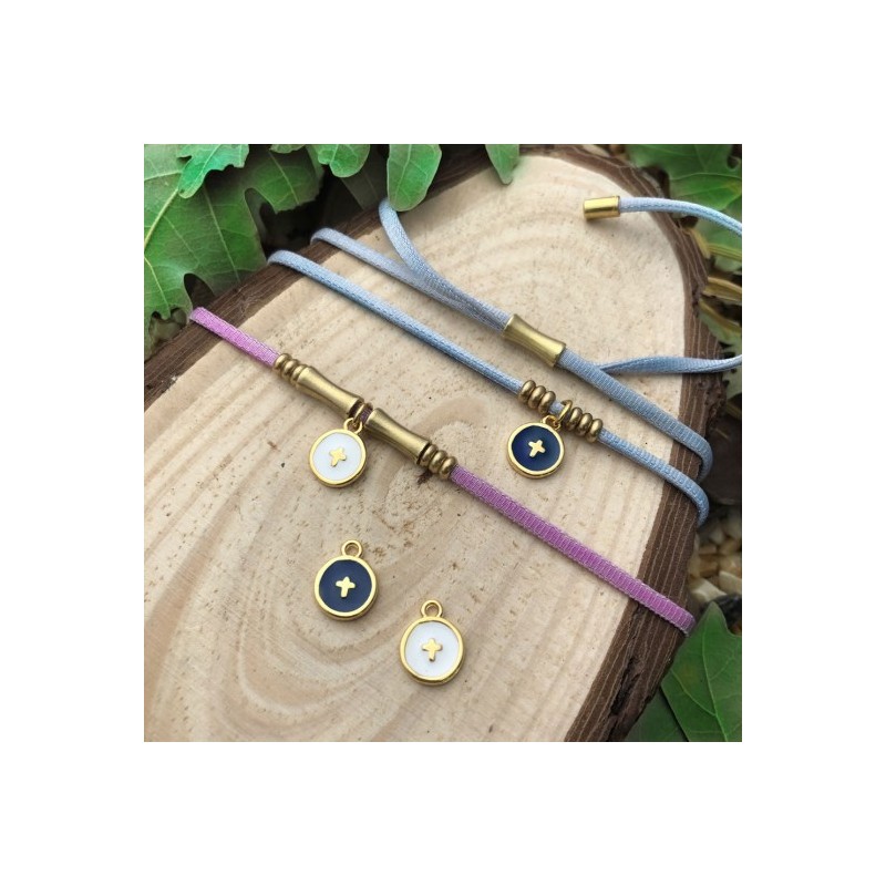 Bolsa de 10 uds.Colgante cruz esmalte azul 10mm. Zamak baño oro