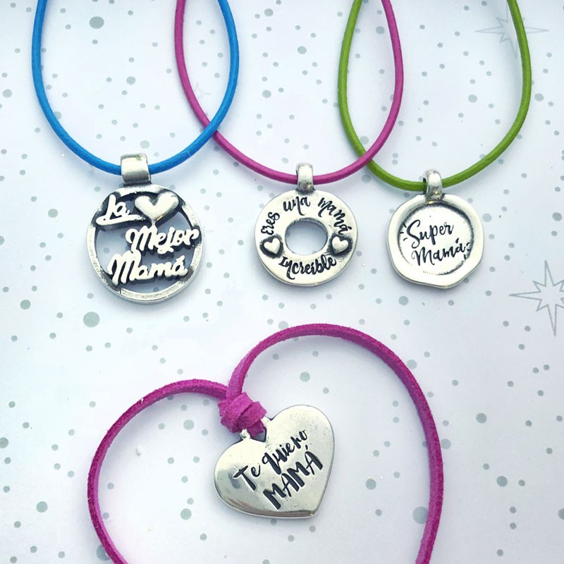 Colgante "SÚPER MAMÁ" en zamak con baño de plata.