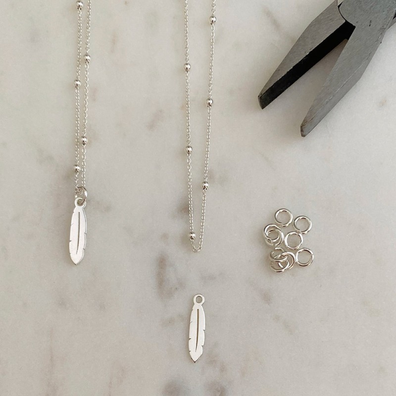 Colgante pluma con asa en plata de ley 925. Fabricado en España.
