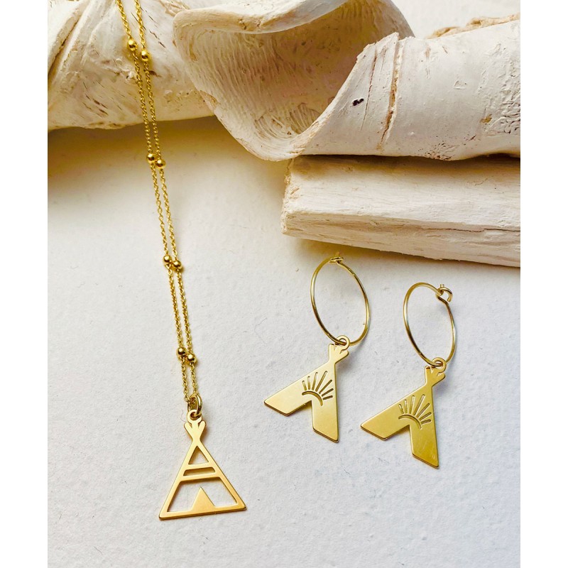 Colgante tipi indio en plata de ley 925, bañado en oro de 18k. Fabricado en España.