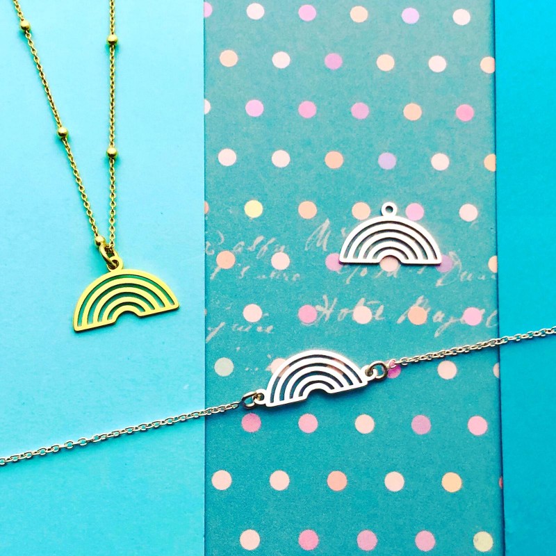 Colgante arcoíris con asa en plata de ley 925. Fabricado en España.