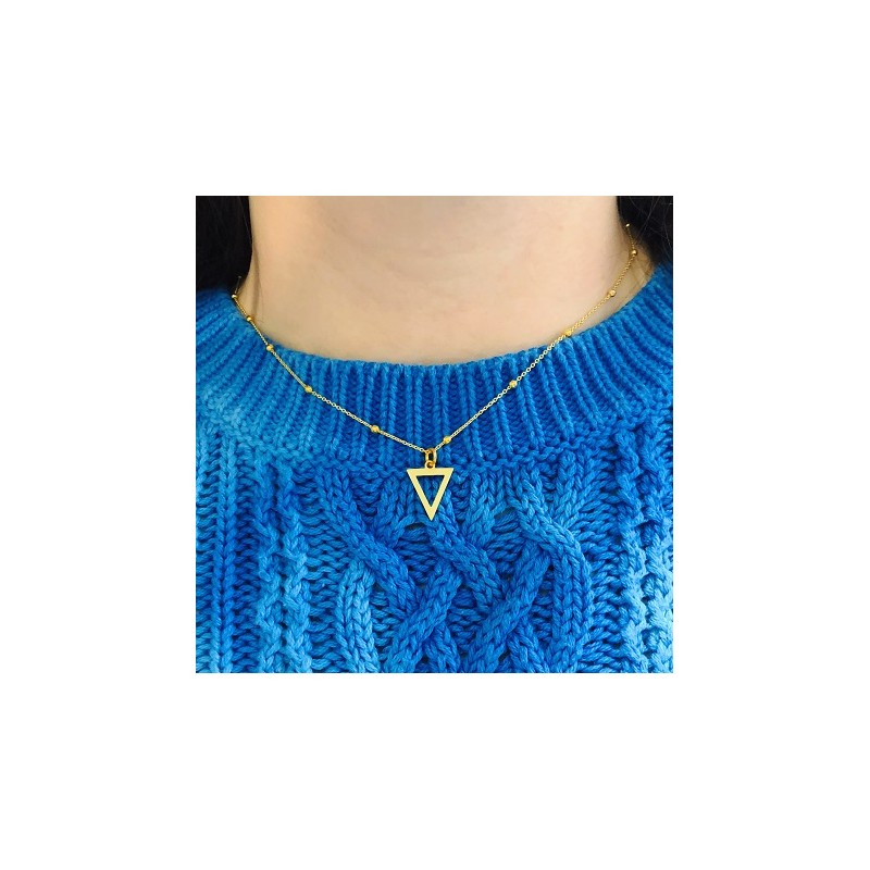 Colgante triángulo en plata de ley 925, bañado en oro de 18k. Fabricado en España.