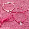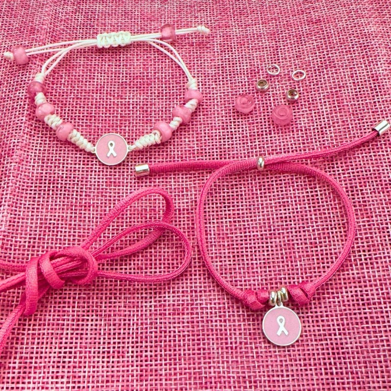 Colgante lazo cáncer redondo en plata de ley 925, esmaltado en rosa. Fabricada en España.