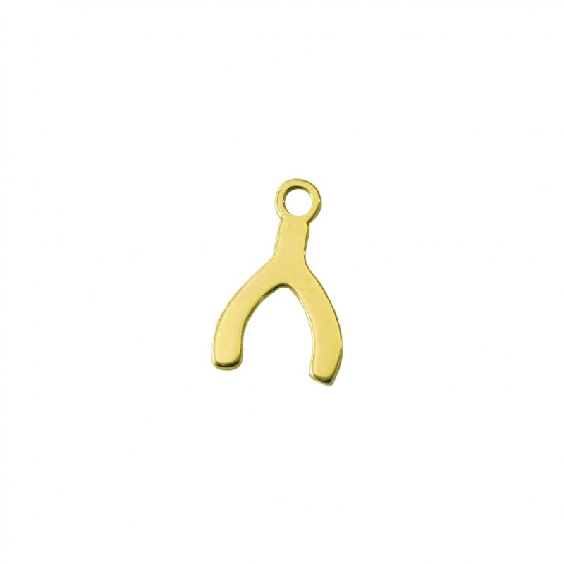 Colgante mini wishbone de la suerte en plata de ley 925 bañado en oro de 18k, fabricado en España.
