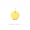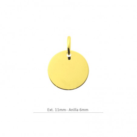 Colgante chapa redondo para grabar en plata de ley 925 bañado en oro de 18k, fabricada en España. Viene con una anilla soldada. Es el tamaño pequeño de chapas para grabar que hay disponible.