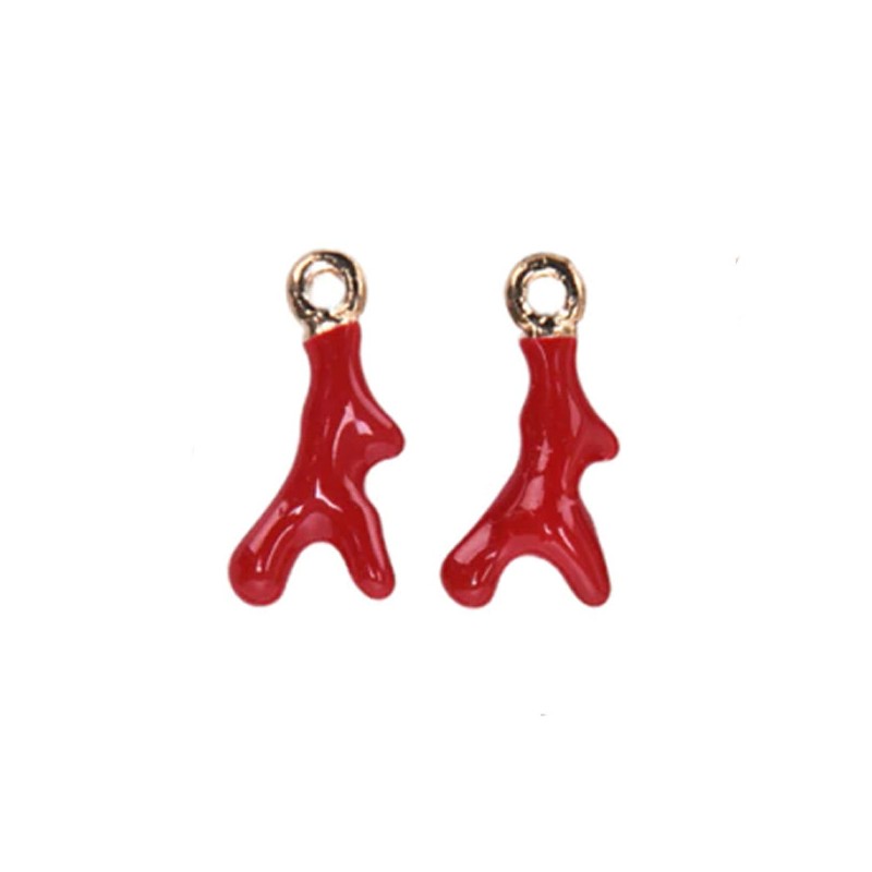 Colgante coral esmaltado en rojo de zamak en baño de oro.