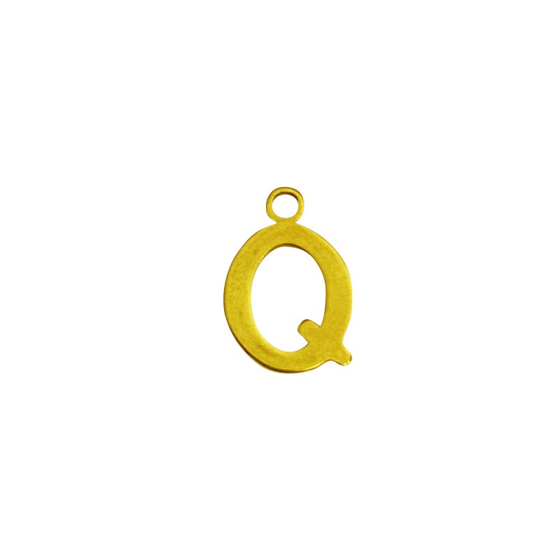 Colgante mini letra Q en plata de ley 925, bañado en oro de 18k. Fabricado en España.
